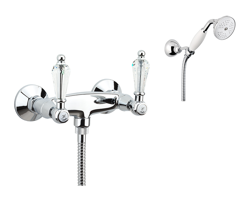 FIORE GIOIELLI GRUPPO DOCCIA ESTERNO CON DUPLEX E DOCCIA CERAMICA BIANCA CROMO
