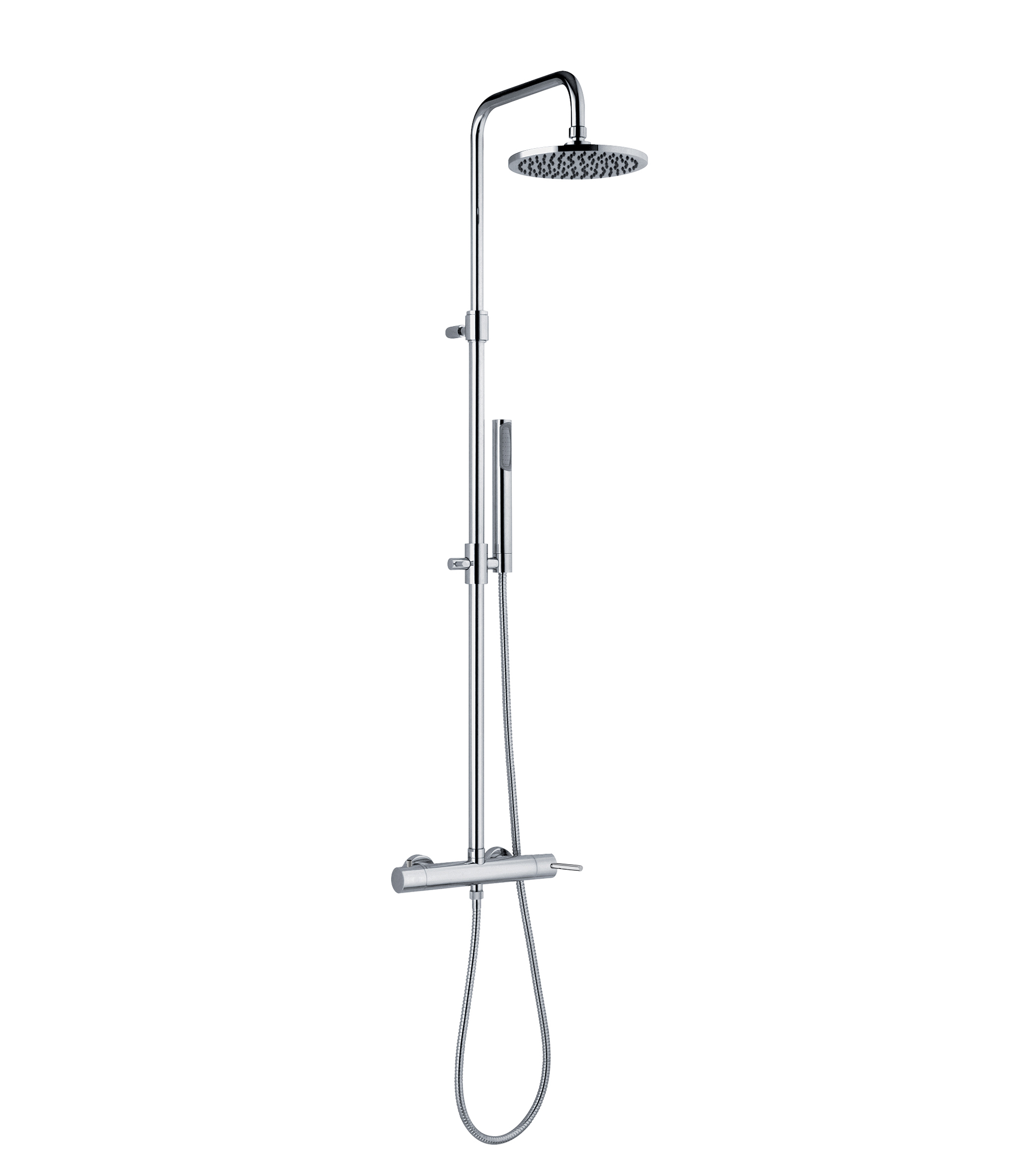 Miscelatore doccia esterno con deviatore incorporato, colonna, soffione Ø200